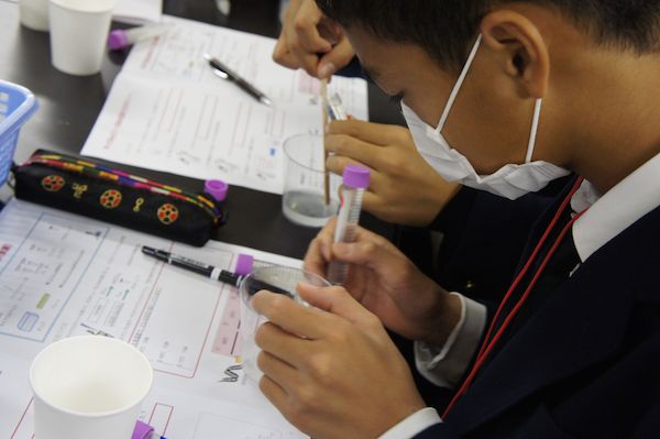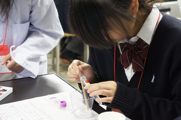初めて使うピペットと、PCRに戸惑いながらも、すぐにコツをつかむ生徒達。