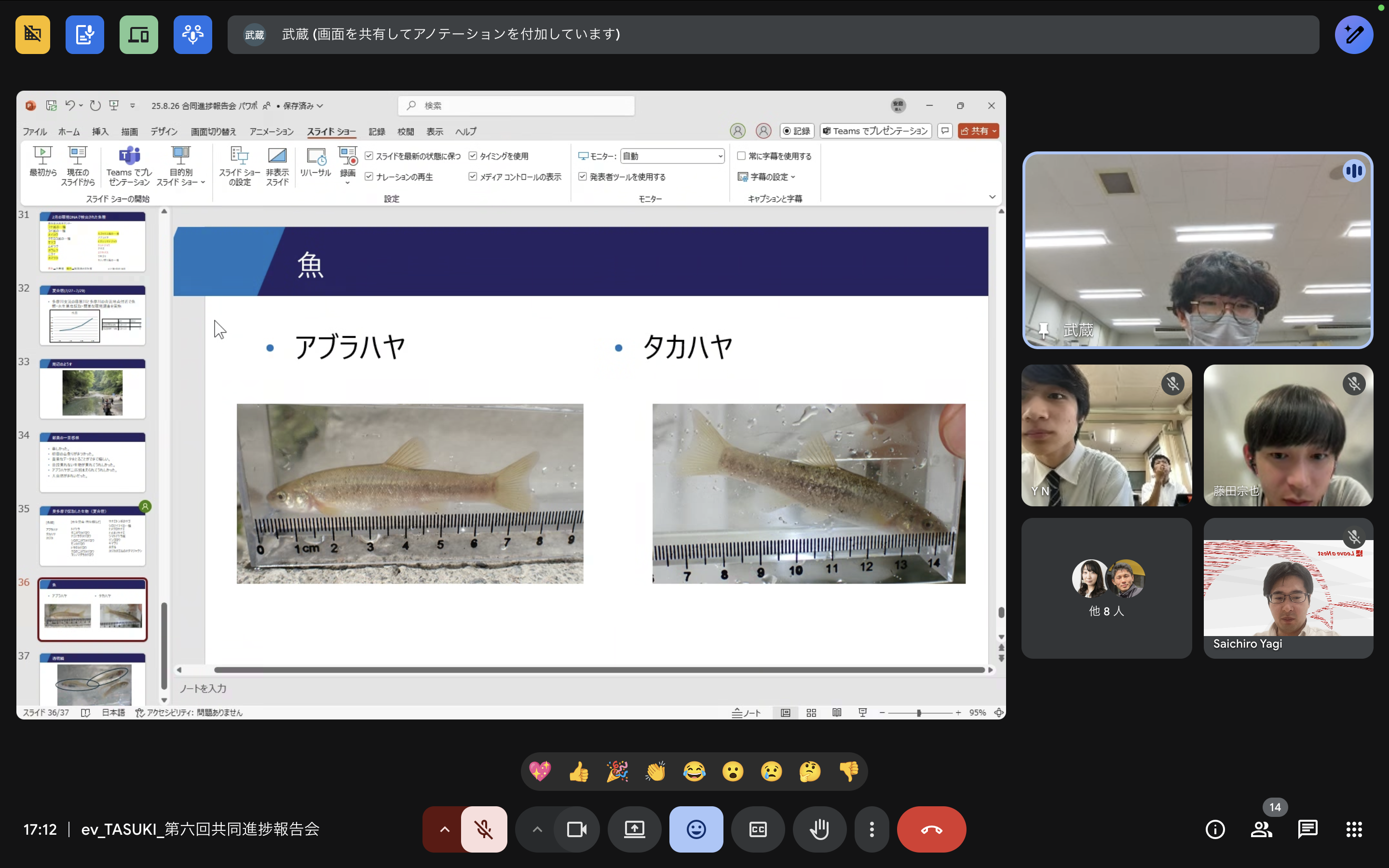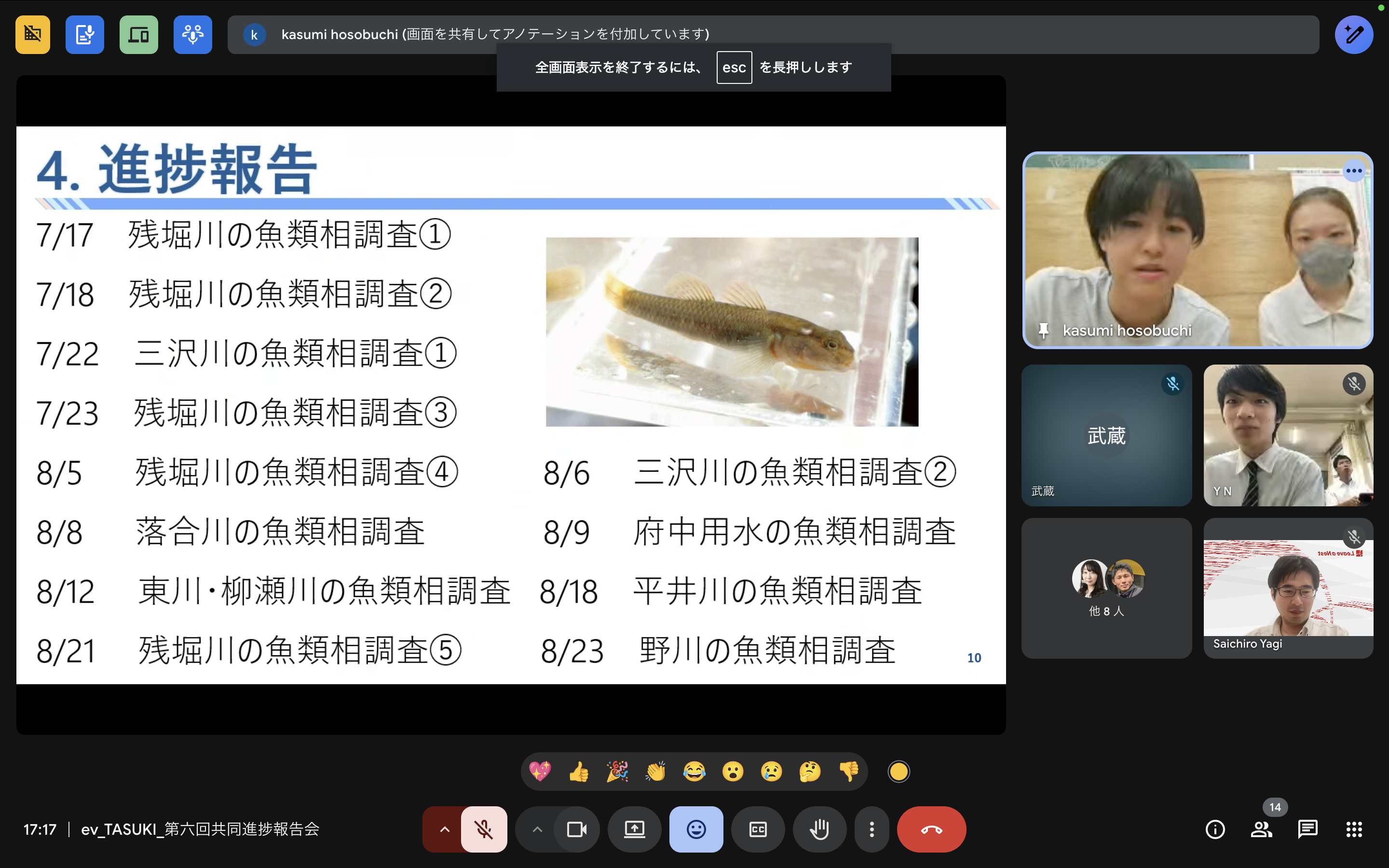 次世代とともに水圏の生物多様性評価に挑戦するTASUKIプロジェクトにおいて、2025年8月26日に第六回共同進捗報告会を実施しました。今回は、各校の最新の研究進捗共有とディスカッションに加え、12月開催のScience Castle Worldで実施する特別企画の内容を参加校全員で検討しました。
